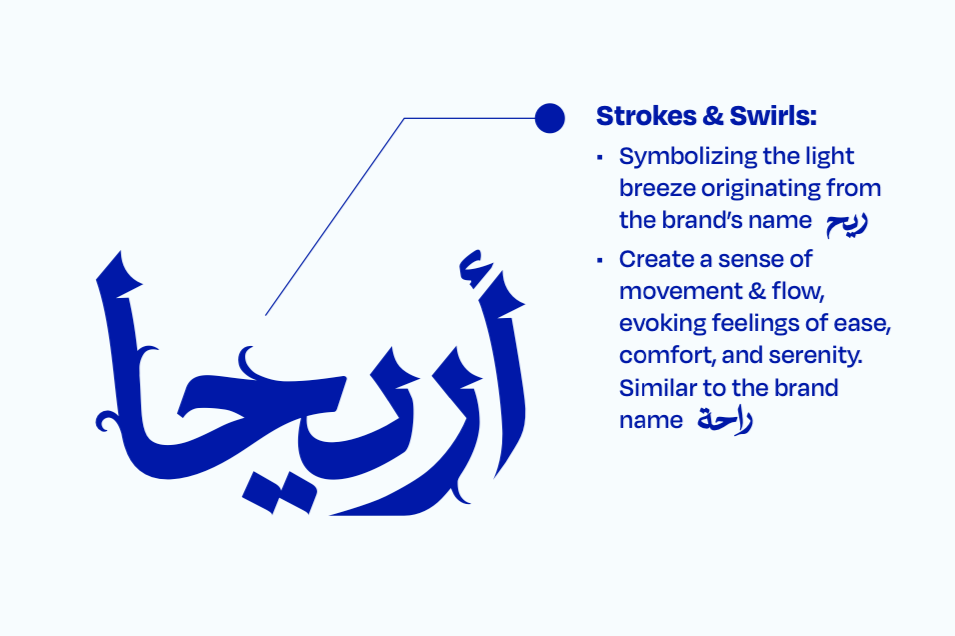 The font of the brand’s wordmark is inspired by the font خط الثلث written on the walls of قبة الصخرة .