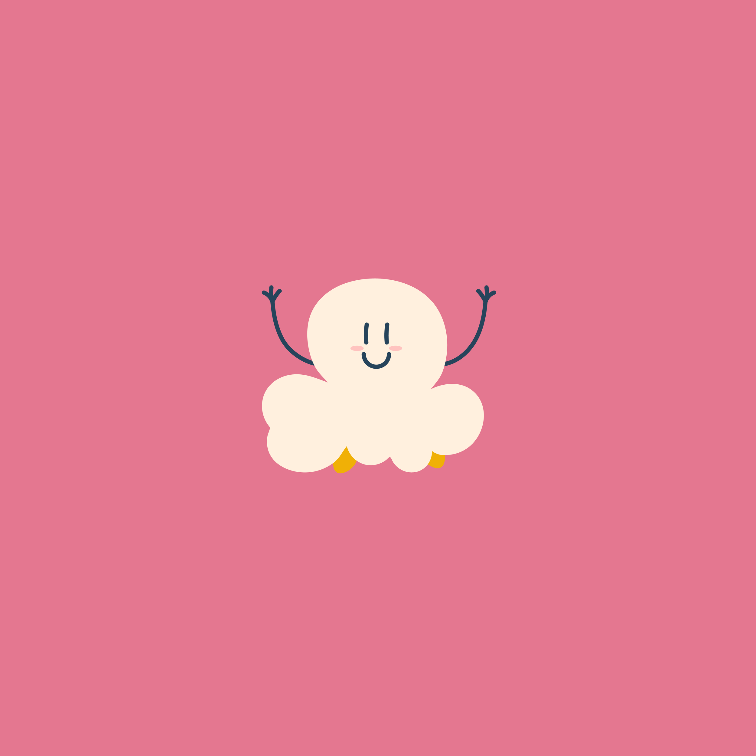 The brand characters portray the brand's tagline "pops while playing" in an engaging form.